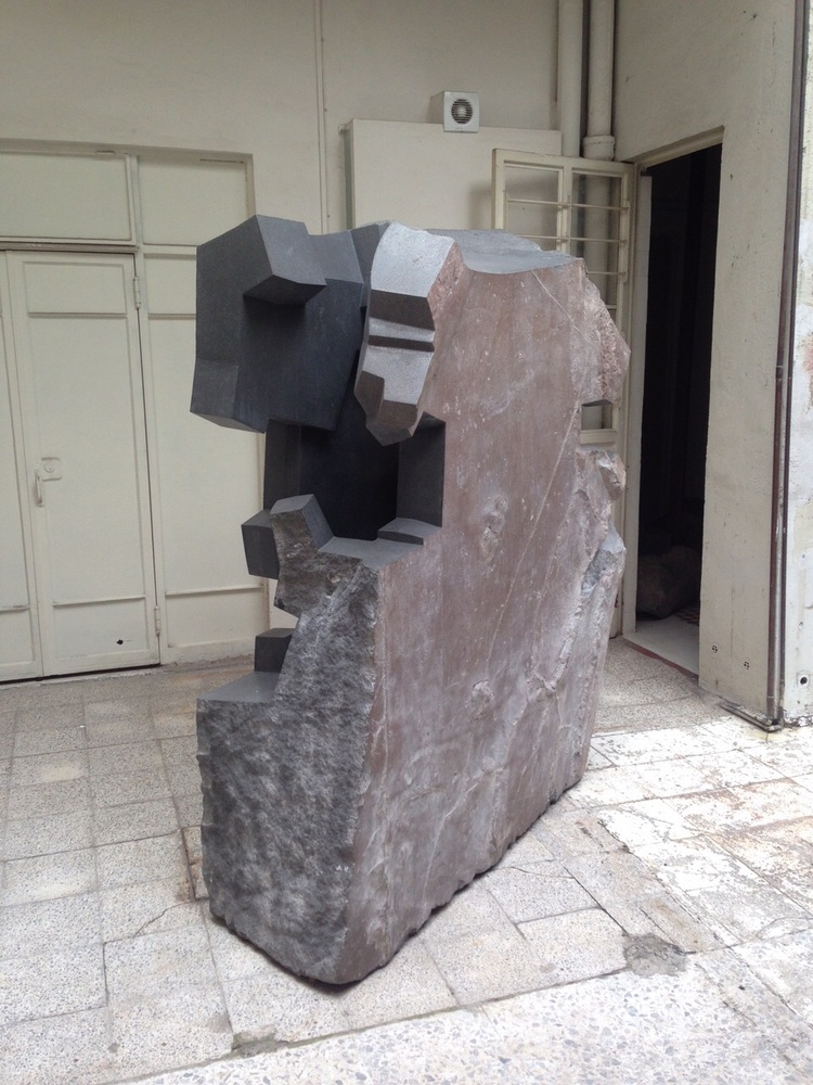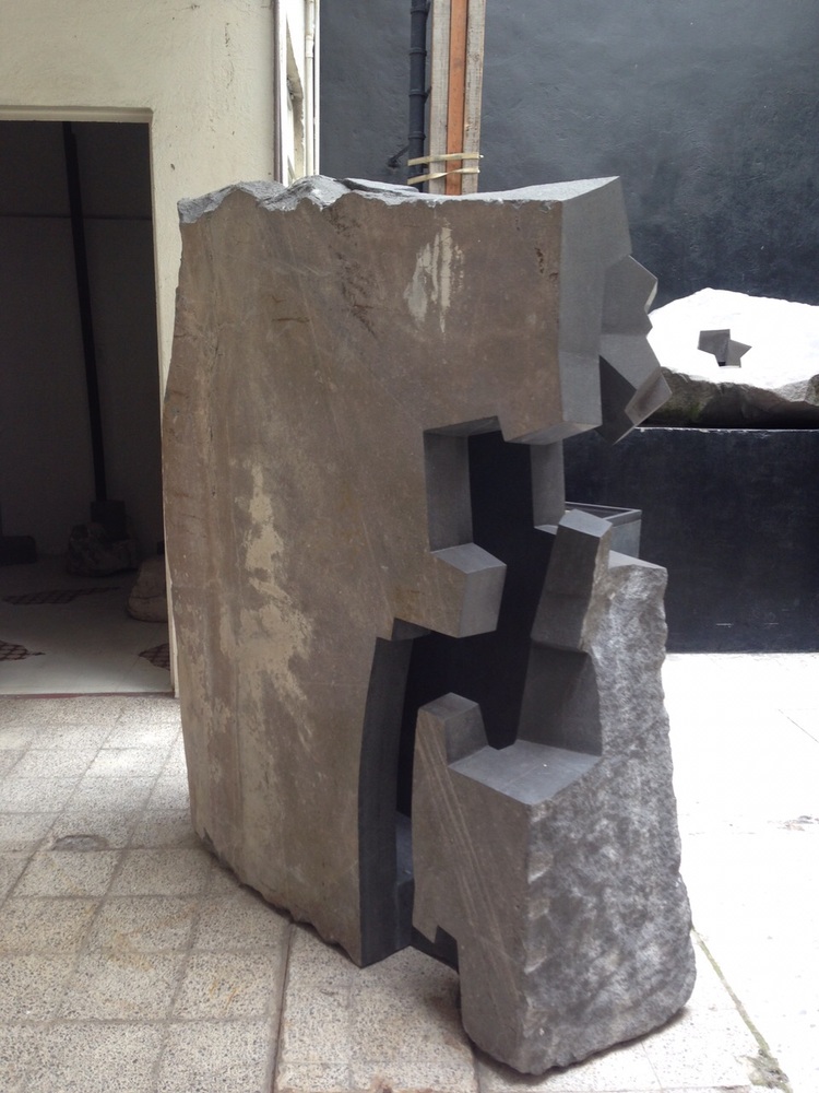 His sculptures are conceived as if they were sketches given mass on several planes; he combines the idiosyncrasy of stone, its colour and textures, with perfectly devised cuts within those volumes that create stratified spaces which always point towards the light.