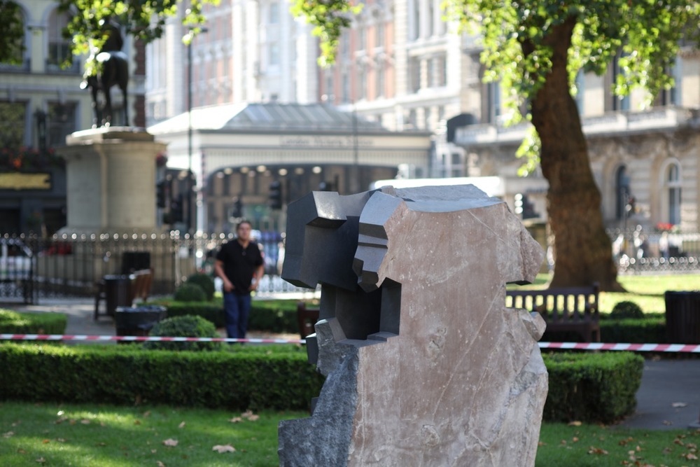 The sculpture on display in London is a piece carved in volcanic stone that beckons us to view the origins and essence of what makes us human beings.