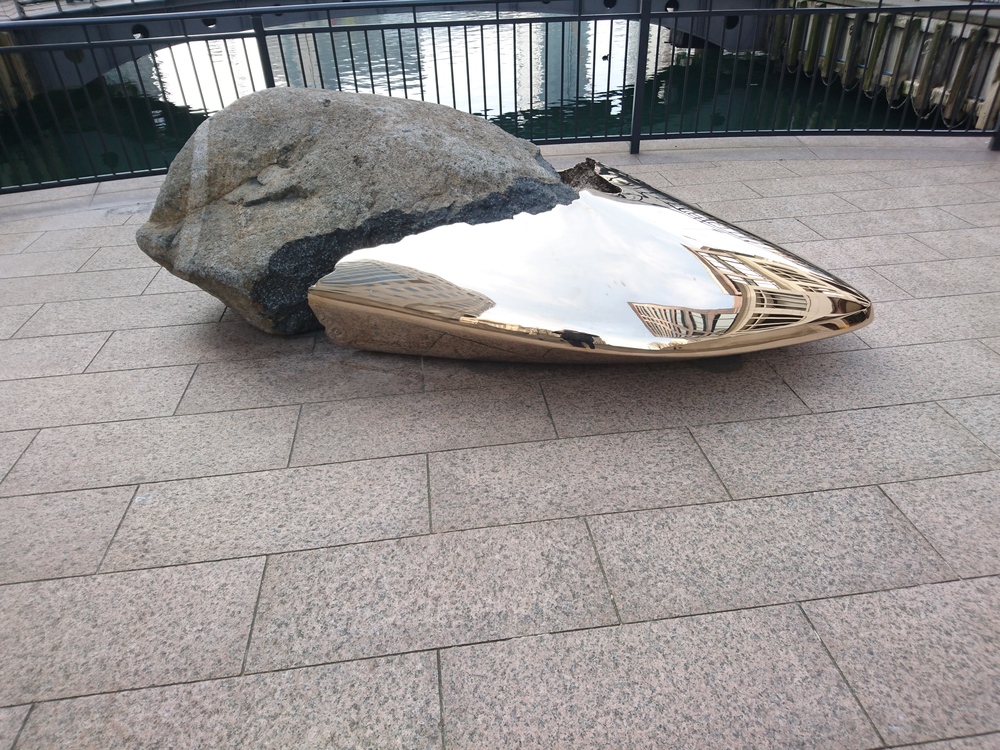The sculpture is compressed of five tons of granite and bronze. It celebrates their second public sculpture following the unveiling of the ten meter high grain of rice in Hong Kong.