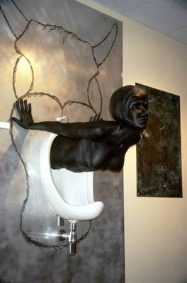 TOM MALEY URINATEUR LIFE SIZE BRONZE CERAMIC AND ALUMINIUM EDITION OF 10